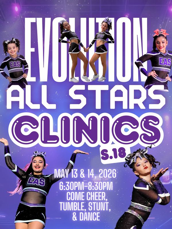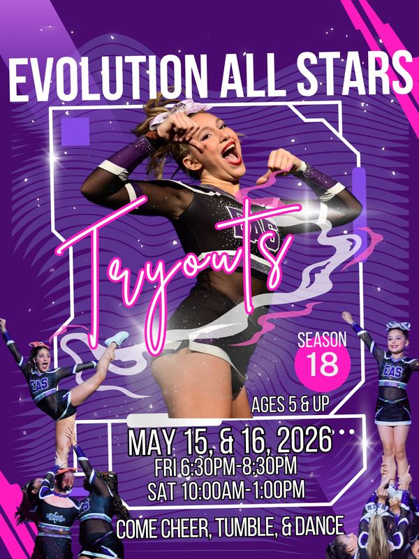 Season 18 is here, and we invite you to join Evolution All Stars and experience what makes our program feel like home. If you’ve been thinking about All Star cheer, this is the perfect time to get started. No experience is necessary, just come ready to learn, work hard, and grow.